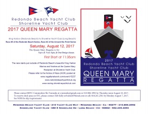 August 12. A point to point race of 23.8 nm along the beautiful SoCal coast from Redondo Beach to the stern of the HMS Queen Mary. Jazz themed dinner menu and Jazz party festival after the race. Please contact Event Chair Deb Kelly to make reservations at Boston878@aol.com 818-261-2501